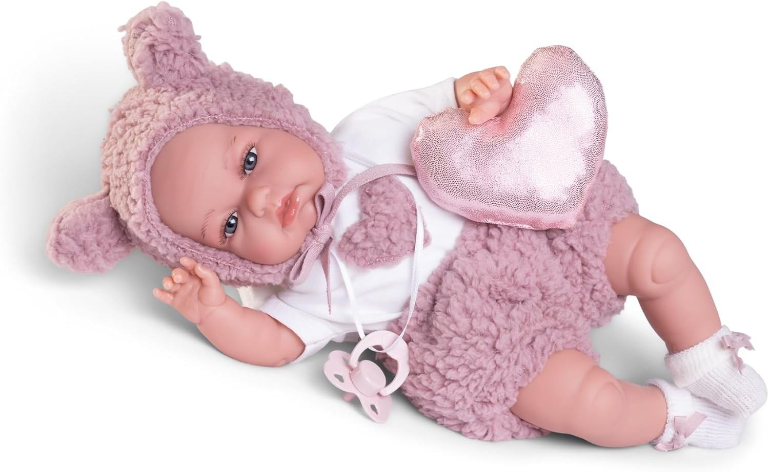 Baby Toneta, con su estructura interna flexible, permite adoptar diferentes posturas para una experiencia de juego más realista. Su diseño compacto de 34 cm y peso ligero de 480 gramos la hacen ideal para llevar a cualquier lugar. Incluye un conjunto de gorro, pantalón de borreguillo y un cojÃn en forma de corazón, estimulando la creatividad y el juego de imitación. Esta muñeca de alta calidad, con cuerpo blandito y detalles realistas, fomenta el desarrollo afectivo y emocional en los más pequeños.