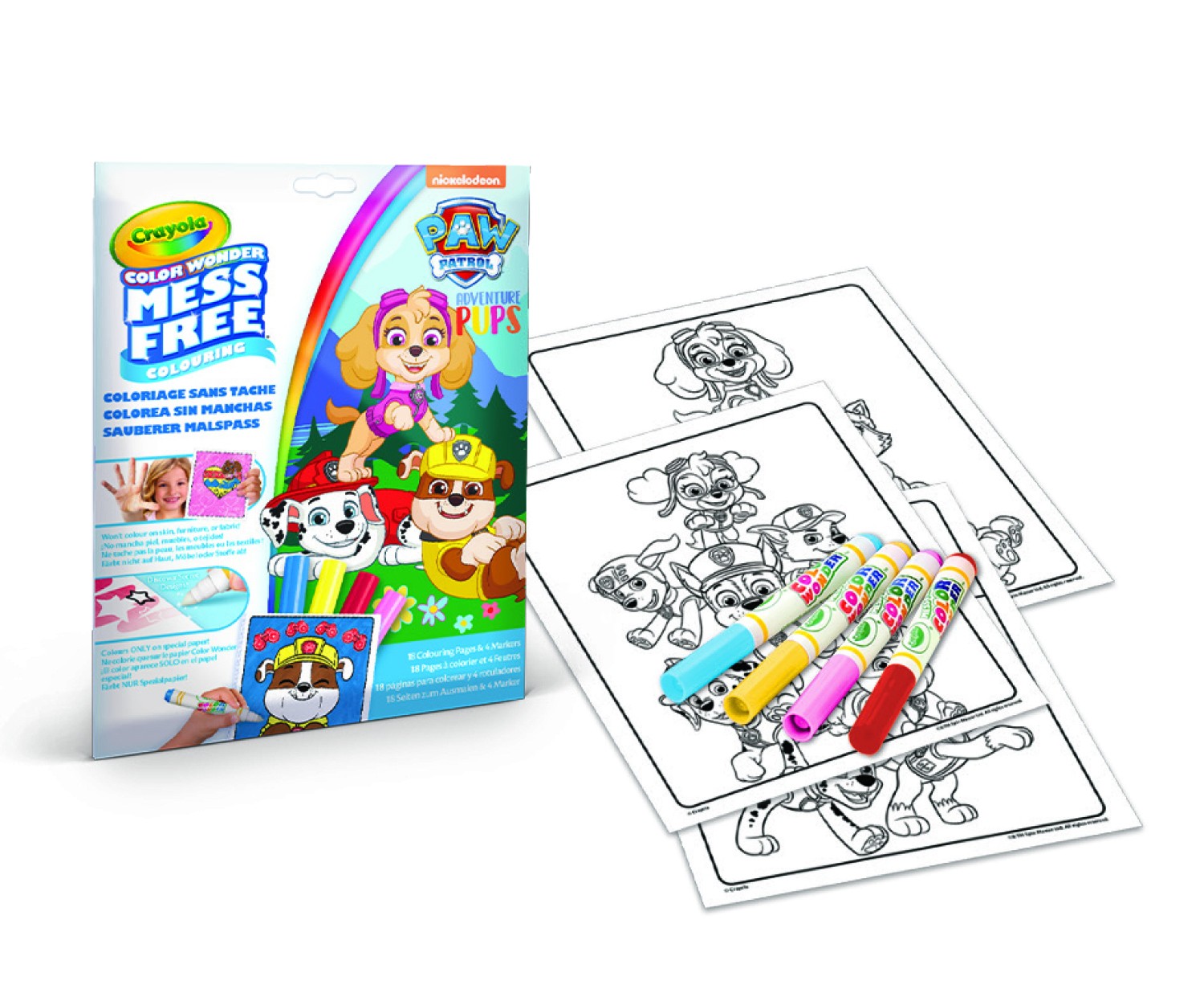 CRAYOLA COLOR WONDER COLOREA PAW PATROL. La tinta Color Wonder es transparente y no mancha la piel, los muebles o las telas, ya que el color solo aparece en el papel especial Color Wonder y en ningún otro lugar como el arte mágico. No mancha el cuero, los muebles ni los tejidos, pueden jugar con total tranquilidad sin miedo a mancharse. 18 páginas para colorear La Patrulla Canina y 4 rotuladores Color Wonder . Al colorear con rotuladores especiales, también aparecen dibujos secretos