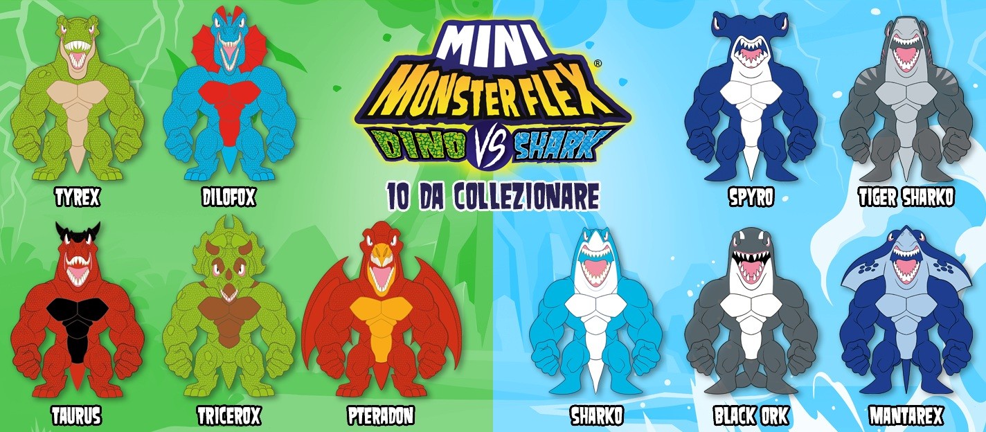 DISPLAY 10 BLISTER MINI MONSTERFLEX DINO VS SHARK