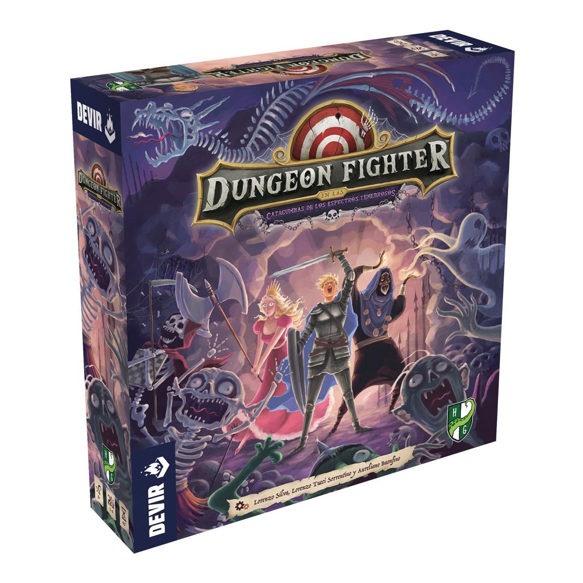 ¡Una nueva aventura en una necrópolis embrujada para nuestros héroes profesionales (bueno, aspirantes)! ¡Adentraos en las ominosas profundidades de una cripta espeluznante! Las Catacumbas de los Espectros Tenebrosos no están tan mal… ¡Solo están llenas de cosas muertas deseosas de mostraros las delicias de la (otra) vida! Preparaos para demostrar una vez más vuestra valÃa como… ¡mazmorreros! Dungeon Fighter en las Catacumbas de los Espectros Tenebrosos puede jugarse de forma independiente o en combinación con cualquier otro juego de la serie Dungeon Fighter. Como novedad, esta edición incluye un dado especial de péndulo, 4 nuevos personajes, 21 monstruos, 3 jefes y un montón de nuevas cartas de equipo y de mazmorra. Y tampoco pueden faltar nuevos chismes de plástico para poner a prueba la habilidad de los jugadores: la moneda de la suerte, un monóculo espectral, una plataforma para elevar el tablero y unos palillos de hueso. ¡Todo lo que necesitas para cazar espectros! ¿Cómo? ¿TodavÃa no conoces Dungeon Figter? Dungeon Fighter es un juego que combina destreza, aventura y una buena dosis de humor. Los jugadores adoptan el papel de héroes autoproclamados, formando un grupo para lanzarse a la aventura. Por el camino, explorarán la mazmorra, inspeccionarán sus muchas estancias y se enfrentarán a interminables hordas de monstruos horribles, lanzando dados a la diana de maneras de lo más variopintas. Templados en la forja de la temeridad, este grupo de aspirantes a héroes necesitará una buena combinación de habilidad y coraje para sobrevivir a los peligros de la mazmorra y acabar derrotando al jefe final. ¿Tendrán lo que hay que tener? Tal como pasaba en el juego original Dungeon Fighter, os encontraréis con salas especiales y enemigos particulares que os pedirán los movimientos y posiciones de lo más inverosÃmiles. Dungeon Fighter en las Catacumbas de los Espectros Tenebrosos no puede faltar en las estanterÃas de los amantes de los juegos cooperativos de mazmorras. La diversión está asegurada mientras tratáis de superar las pruebas tirando los dados de formas que nunca habrÃais imaginado. Si combináis esta edición con otros tÃtulos del universo Dungeon Fighter conseguiréis partidas únicas y un buen número de encuentros distintos. ¡Confiad en vuestra destreza y lanzaros a la aventura!