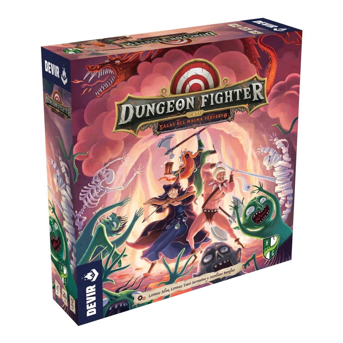 Vuelve Dungeon Fighter… ¡Más ardiente que nunca! Dungeon Fighter en las Salas del Magma Perverso es una expansión independiente para Dungeon Fighter, ¡con nuevos contenidos de temática flamígera y un montón de chismes para jugar! ¡Tomad vuestros dados y preparaos para demostrar vuestra valía en la mazmorra!