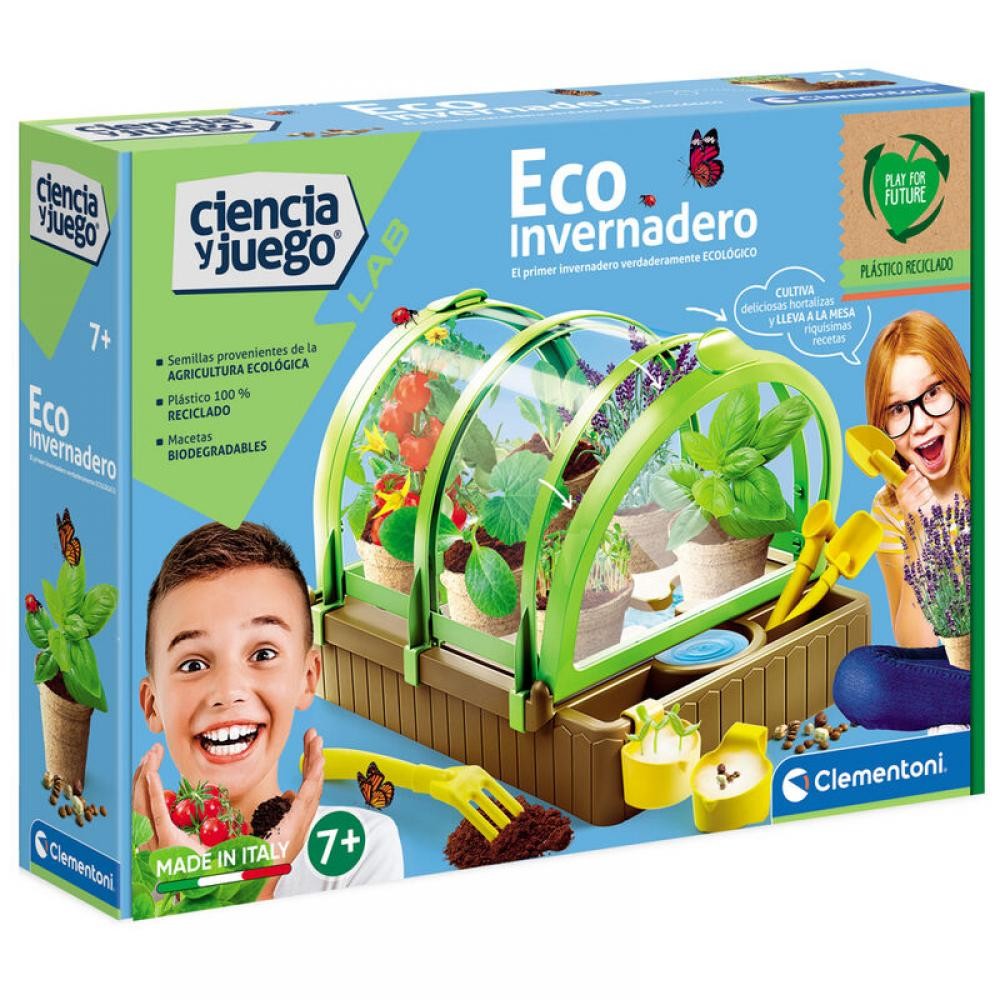 Edad: +7 años. Un invernadero completamente nuevo con un diseño moderno para descubrir los secretos del cultivo organico. Fabricado integramente en plastico recilcado, con frascos biodegradables y semillas organicas y un nuevo sistema de apertura sencillo y eficaz para ofrecer el habitat adecuado para las plantas. con un kit completo de herramientas y macetas colgantes especiales para la germinacion que ayudaran al niño a plantar y cultivar plantas. El manual cientifico ayuda al niño a descubrir los secretos de la agricultura organica, para convertirse en un experto en botanica.