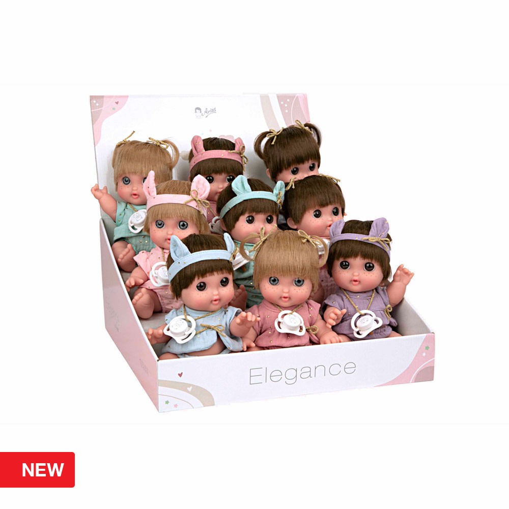 El expositor de muñecas ELEGANCE de 26 cm COQUITOS incluye un surtido de 5 adorables modelos. Estas muñecas, con diferentes conjuntos playeros, están confeccionadas con tejidos de alta calidad y un diseño detallado. Su cuerpo de vinyl desprende un delicado aroma a vainilla, lo que las convierte en el regalo de cumpleaños perfecto para niñas y coleccionistas. Con 5 modelos únicos, estas muñecas destacan por su ternura y encanto. ¡No pierdas la oportunidad de coleccionarlas todas y sorprender con un regalo especial lleno de estilo y calidad!