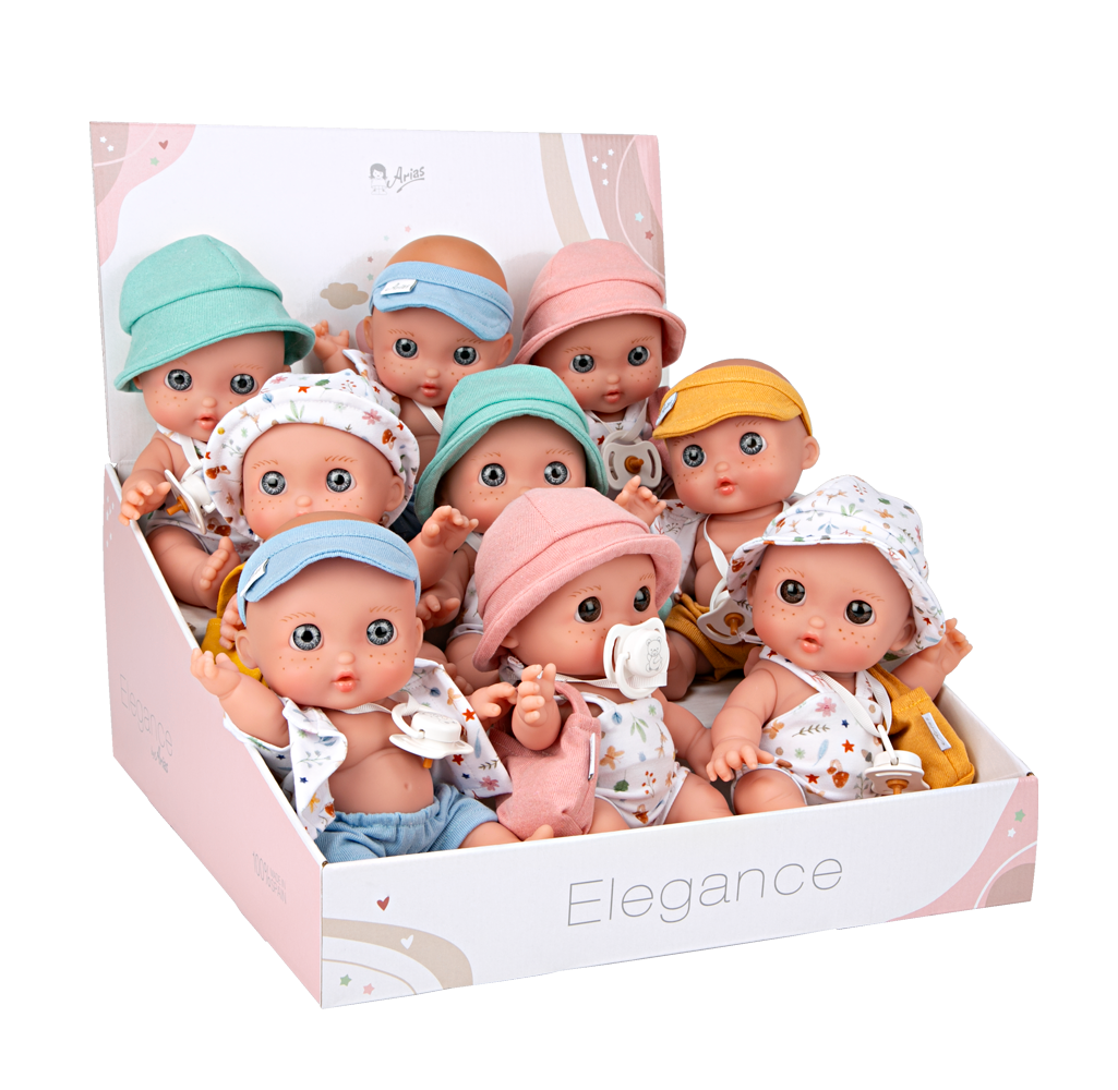 Descubre la increÃble colección de muñecos, fabricados con un riguroso proceso de calidad que destaca por su atención a cada detalle. Los rasgos realistas y las lÃneas cuidadas de estos bebés hacen de esta colección una pieza esencial en la infancia de cualquier niño. Con un fabricación 100% europea, garantizamos la máxima calidad en cada uno de nuestros productos. Ideales para acompañar el crecimiento de los más pequeños, estos muñecos son perfectos para quienes buscan un toque de elegancia y autenticidad en cada juguete.