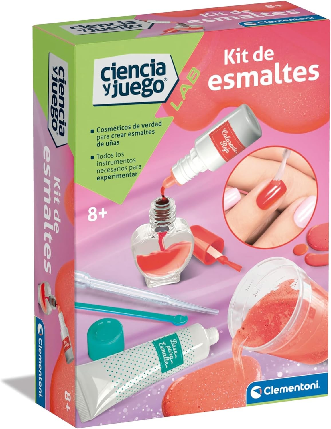 El juego contiene todos los componentes cosméticos y herramientas para crear el propio color de esmalte de uñas, de una forma didáctica y divertida.