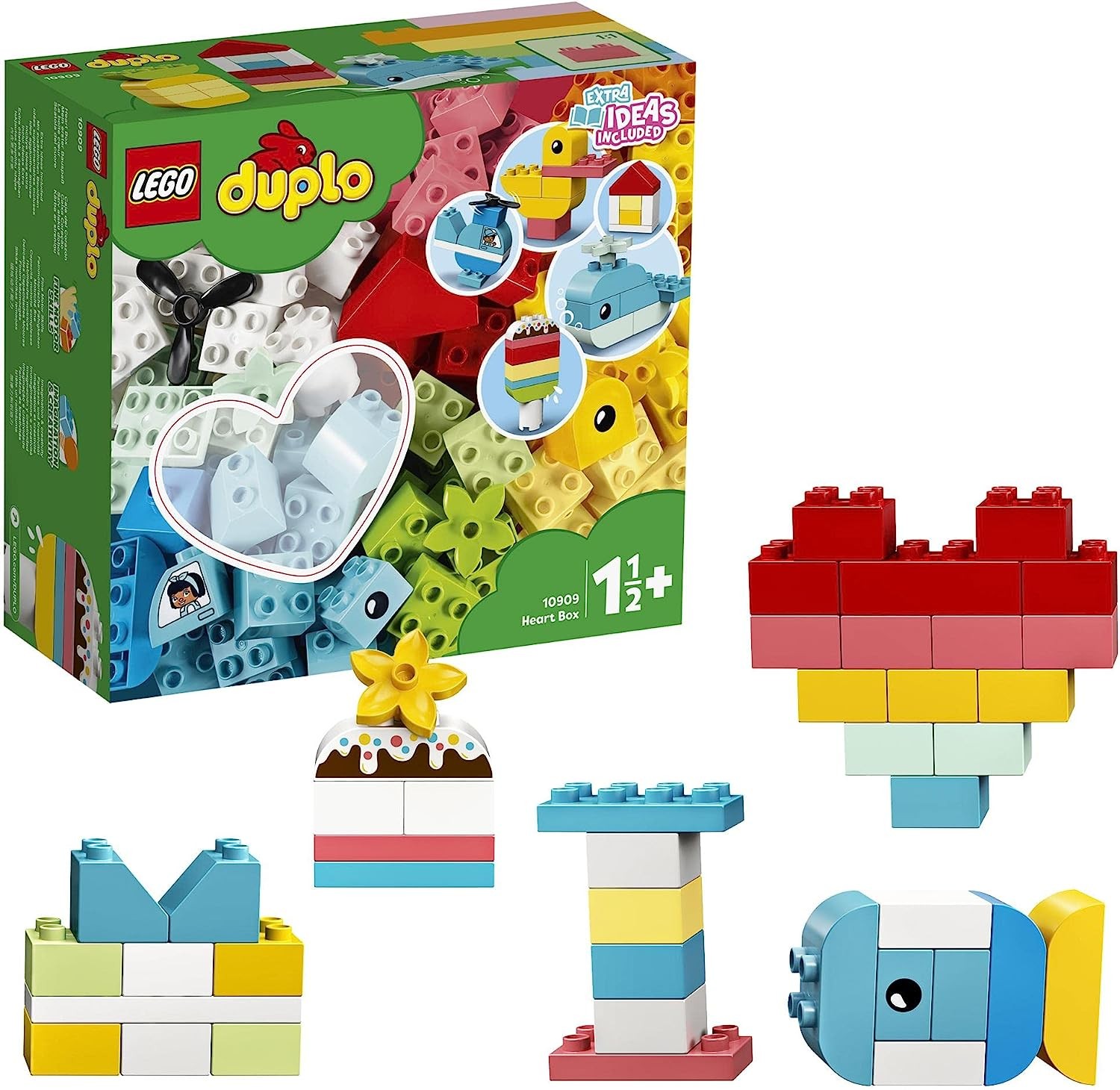 Colorido surtido de ladrillos para disfrutar de sesiones de juego llenas de creatividad: Con 15 modelos e infinita diversión basada en la construcción libre, la Caja del Corazón LEGO® DUPLO® Classic (10909) está repleta de estímulos para los bebés