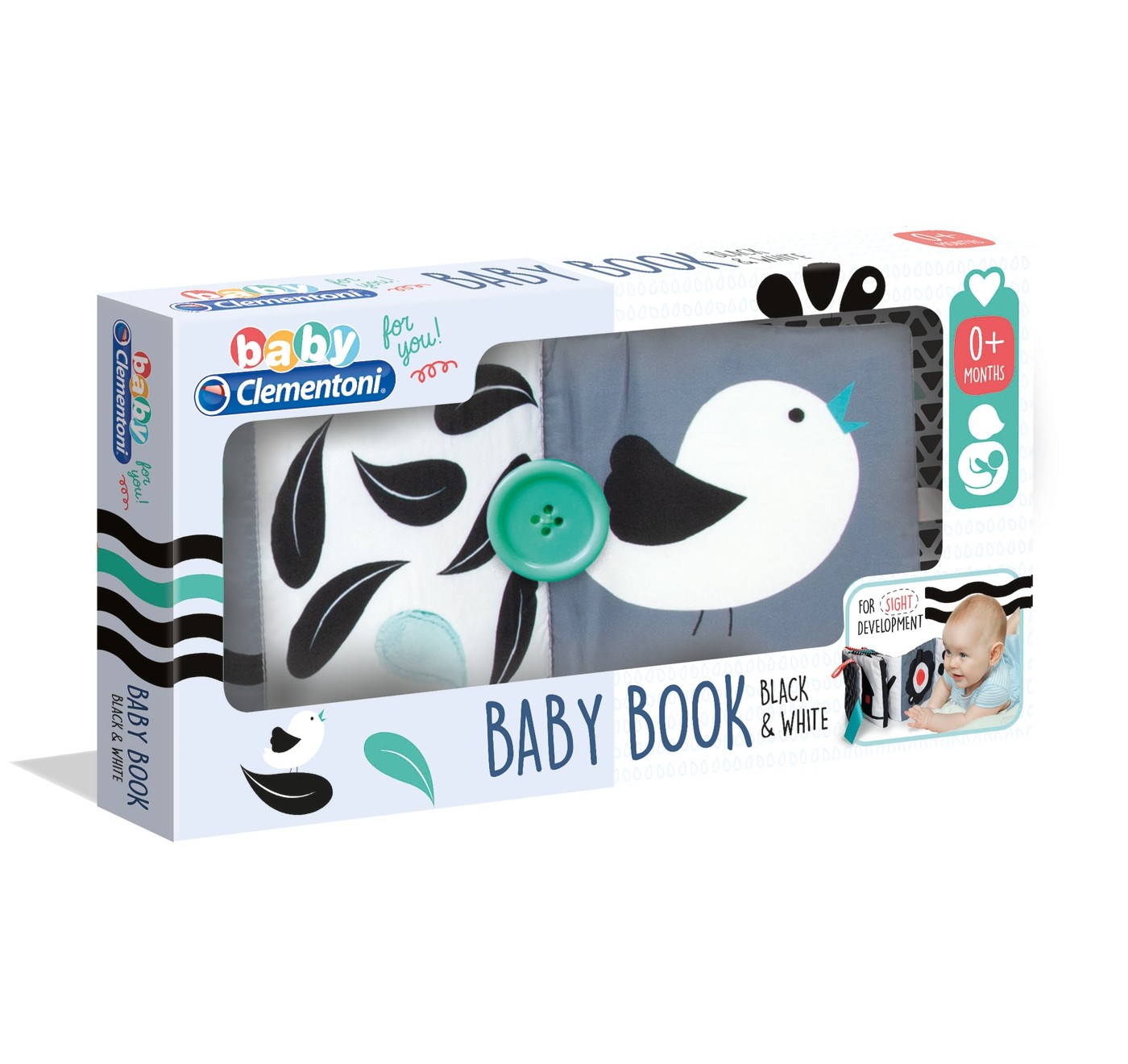 Un libro blandito con ilustraciones en blanco y negro que ayudan a desarrollar la percepción visual de los bebés en sus primeros meses.