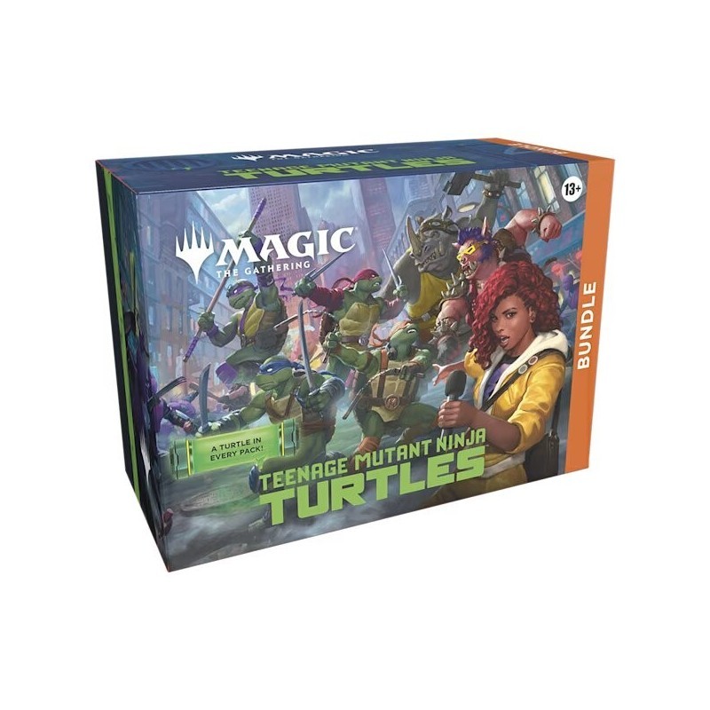¡Las tortugas ninja se estrenan en el campo de batalla para darle una dosis cuádruple de caos mutante a Magic: The Gathering! Colecciona, construye y combate con una increÃble plantilla de aliados y enemigos que llevan más de cuatro décadas cosechando una tremenda afición tortuguil. ¡Dales cien vueltas a los matones de Shredder con la nueva mecánica de infiltración y potencia la fuerza de tu equipo con fichas de Mutágeno para triunfar con los verdaderos héroes de Nueva York!
