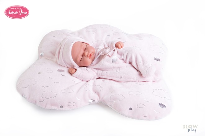 Estos pequeñines destacan por su gran realismo. De cuerpo sexuado y fabricados en vinilo de tacto especial. Pitu Luni sueños en las nubes tiene una dulce carita de un pequeño bebé durmiendo tranquilamente. Descansa sobre su cojín de nubes a conjunto con su pijama y su gorrito. Mide 26 cm. y pesa 410 gr. Hay tantos Pitus diferentes en Muñecas Antonio Juan como lo son los niños de verdad, para que encuentres el que más te gusta. Con gran variedad de vestidos y complementos.