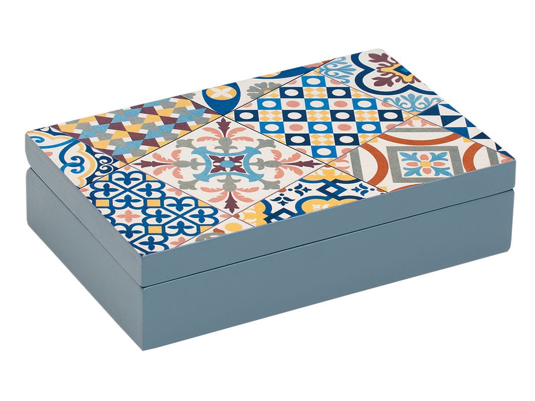 El clásico juego del mus ahora presentado en una caja de madera inspirada en los mosaicos.