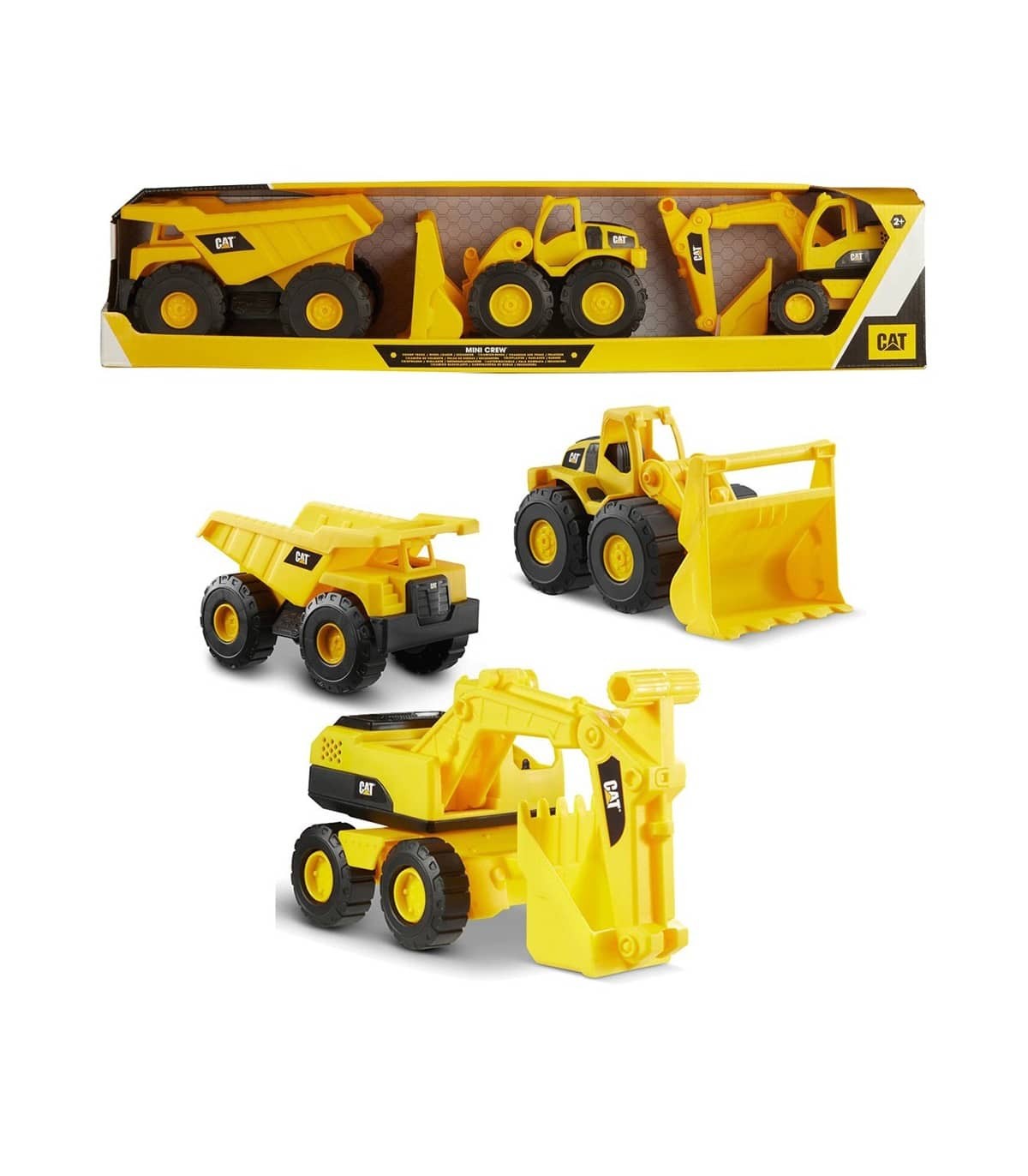 Construido pequeño y resistente, el juego de paquete de 3 Cat Mini Crew es un excelente juego de inicio para construir su flota de construcción. Estos vehículos de empuje de 7” le permiten tener el control en cada paso del camino. Con un camión volquete, un cargador de ruedas y una excavadora. Mueva y posicione los cubos y brazos de vehículos articulados como si fueran reales. Las máquinas Real Cat son conocidas por su alta calidad y estos juguetes no son diferentes, construidos para resistir los elementos y perfectos para jugar en interiores o exteriores. Apropiado para mayores de 2 años. Incluye: 1 mini camión de volteo con tripulación, 1 mini cargador de ruedas con tripulación, 1 mini excavadora con tripulación