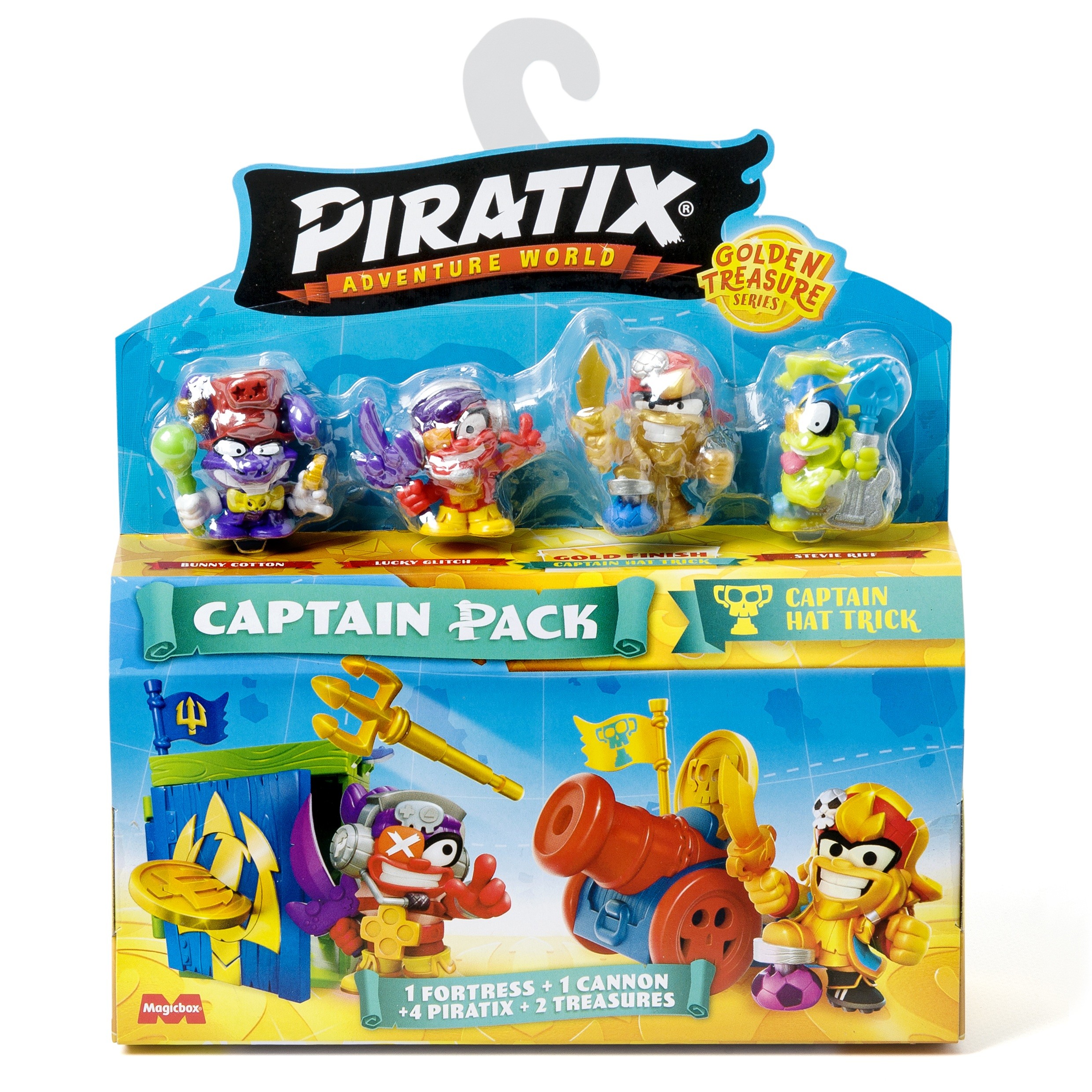 AUMENTA TU COLECCIÓN RÁPIDAMENTE: Amplía o comienza tu colección Piratix con este Pack Capitán, que incluye 4 figuras de Piratix, 4 accesorios, 1 fortaleza, 1 cañón, 2 banderas exclusivas y 2 tesoros exclusivos. Hay más de 60 personajes Piratix para coleccionar, junto con sus accesorios intercambiables
