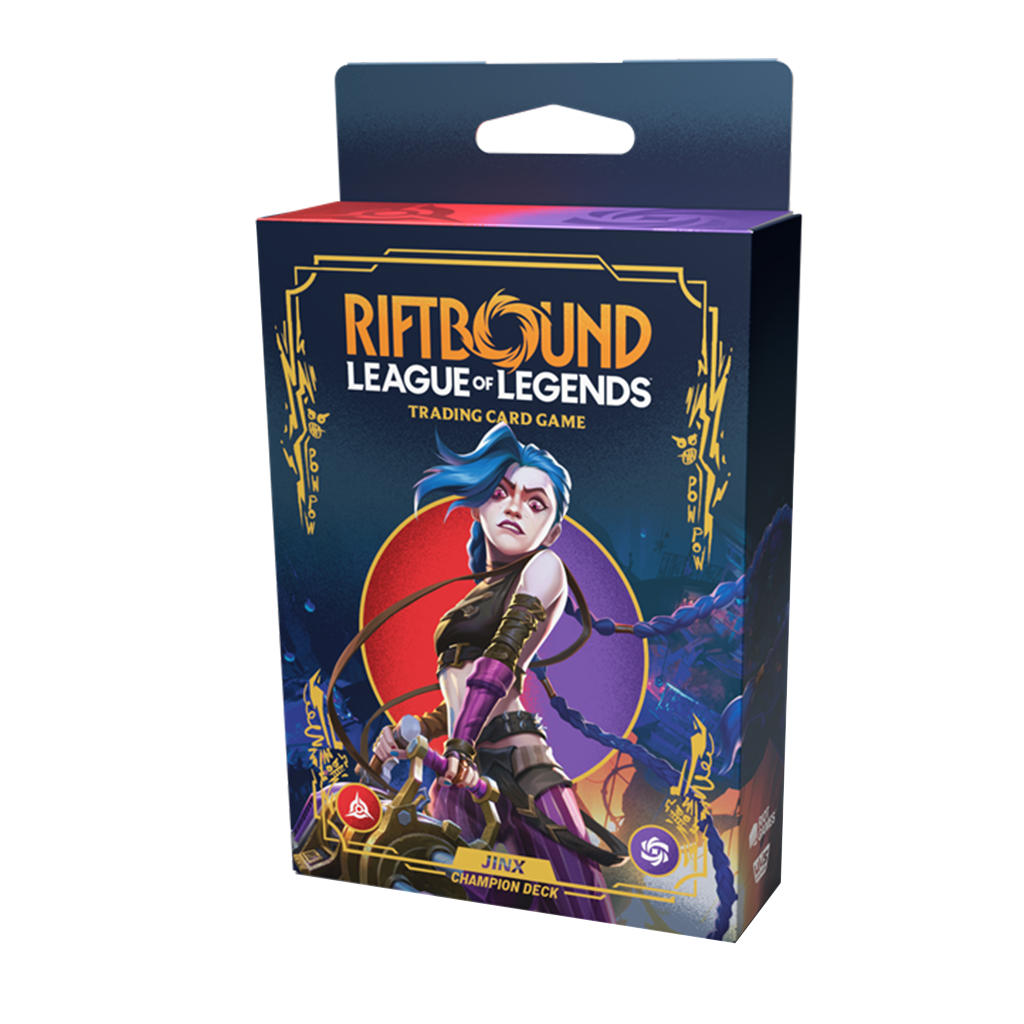 El mazo preconstruido de 56 cartas de Jinx está repleto de unidades agresivas, hechizos explosivos e incluye una icónica carta de campeón de la propia Jinx.