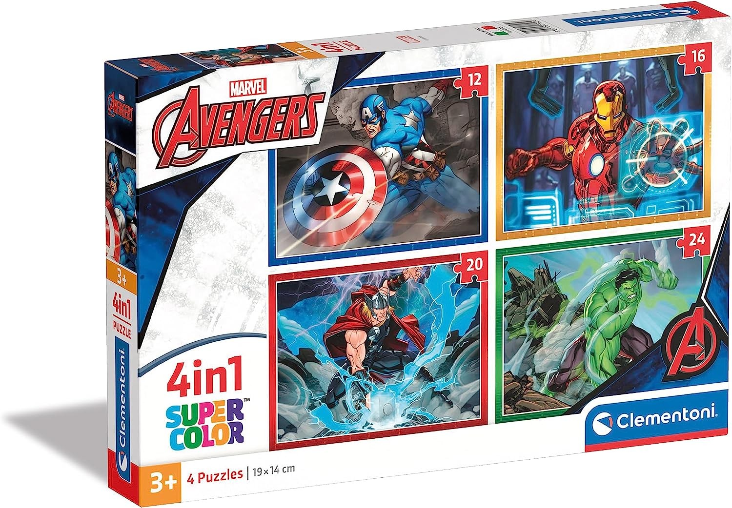 Puzzle infantil 4 en 1 con 4 imágenes diferentes de distinto número de piezas. Contiene: 1 puzzle de 12 piezas, 1 puzzle de 16 piezas, 1 puzzle de 20 piezas y 1 puzzle de 24 piezas. Favorece el desarrollo de la motricidad fina y la coordinación óculo manual, además de fomentar la memoria y la concentración.