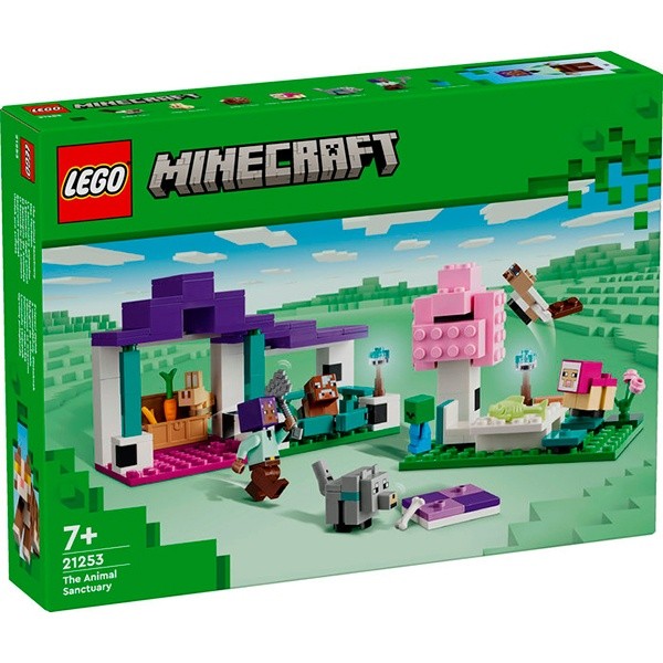 El Santuario de Animales LEGO® Minecraft® (21253) es una versátil idea de regalo basada en la construcción. Para interpretar la acción del videojuego, cuenta con 6 animales Minecraft que las niñas y los niños de 7 años o más pueden cuidar e incluye un personaje LEGO Minecraft inédito: Efe. Este set ambientado en el bioma Llanura tiene 3 zonas: un espacio de juego vallado con una puerta y una habitación con un cofre lleno de comida para animales, como un hueso, una zanahoria y trigo; un área depÃcnic con una mesa bajo un árbol; y una alfombra donde pueden echarse los animales cansados. Además de su cuidador, Efe, el set contiene varias criaturas bebés, como un gato, una oveja magenta, un lobo, un conejo, una vaca Minecraft… e incluso un zombi bebé Minecraft. Este set LEGO Minecraft fomenta el juego independiente y se integra con facilidad con otros juguetes LEGO Minecraft (a la venta por separado). Como extra, descubre LEGO Builder: una app para pasarlo genial construyendo los modelos.
