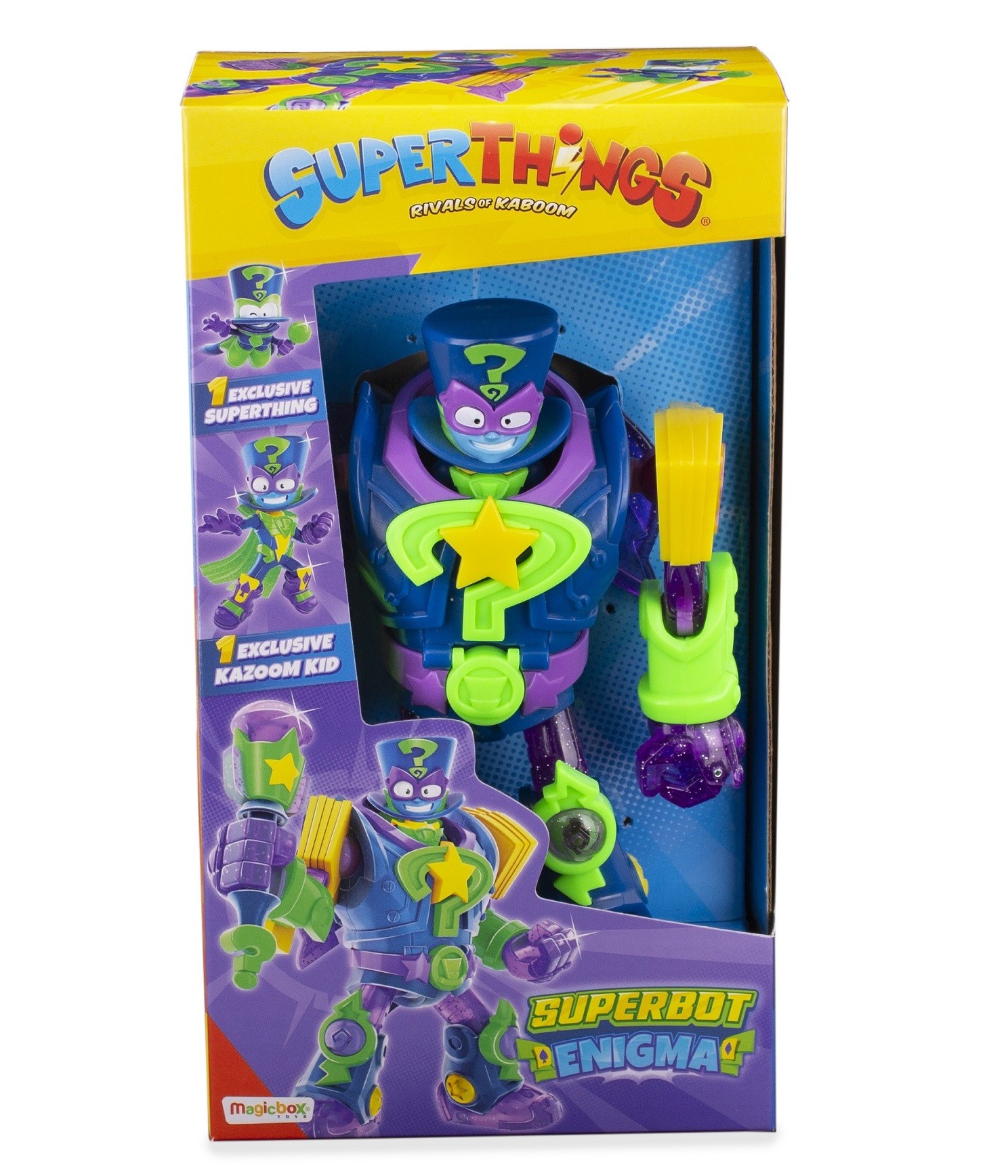 ¡Ha vuelto el primer ultra raro de los Superthings! ¡Vuelve Enigma de la serie 1! En esta serie de Rescue Force viene con su Kazoom Kid llamado Enigmaster y un superbot con un gran bastón el cual pueden manejar los dos para volar y luchar.
