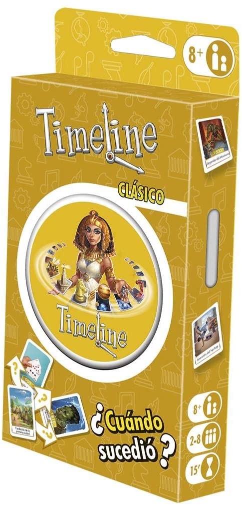 ¿PodrÃa alguien beber champán cuando Darwin formuló su teorÃa de la evolución? Para ganar el juego, deberás ser el primero en colocar correctamente todas tus cartas. Haz que este juego sea más divertido y desafiante combinándolo con las cartas de otros juegos de Timeline. CONTENIDO 55 cartas, 1 caja de latón y 1 reglamento.